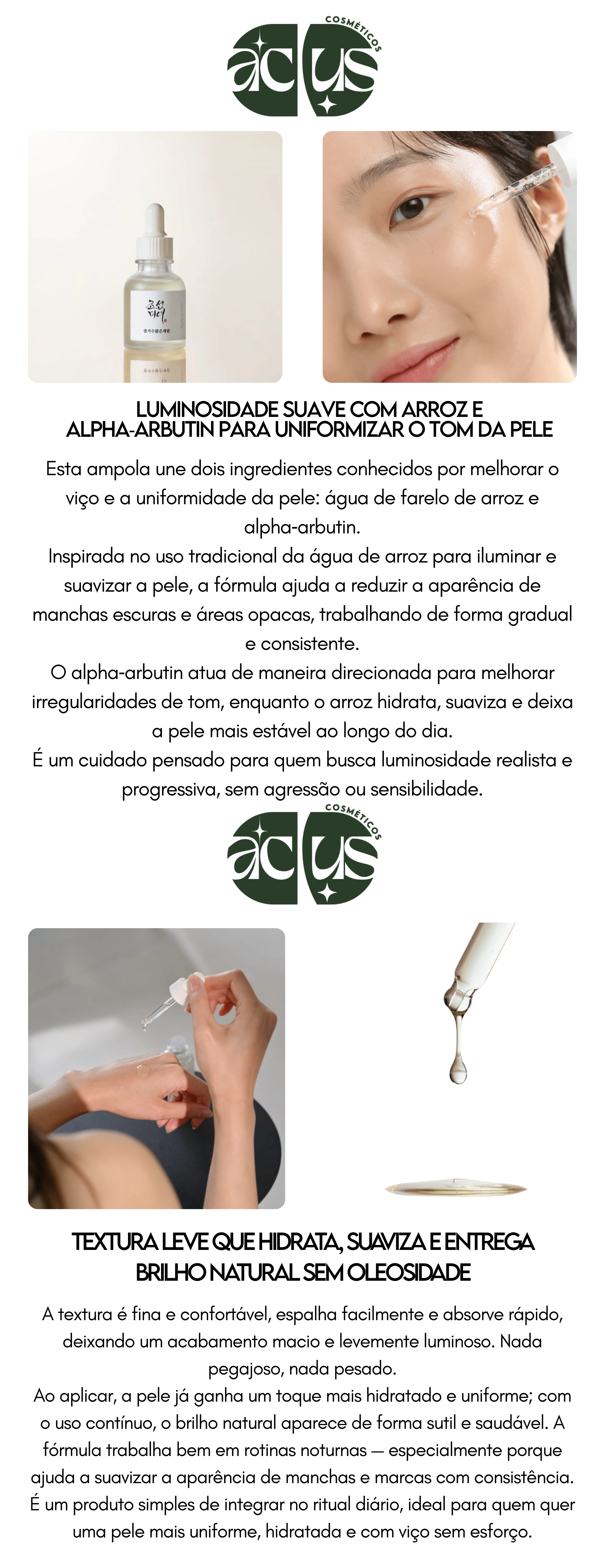 • Rice Bran Water – hidrata e deixa o acabamento luminoso
