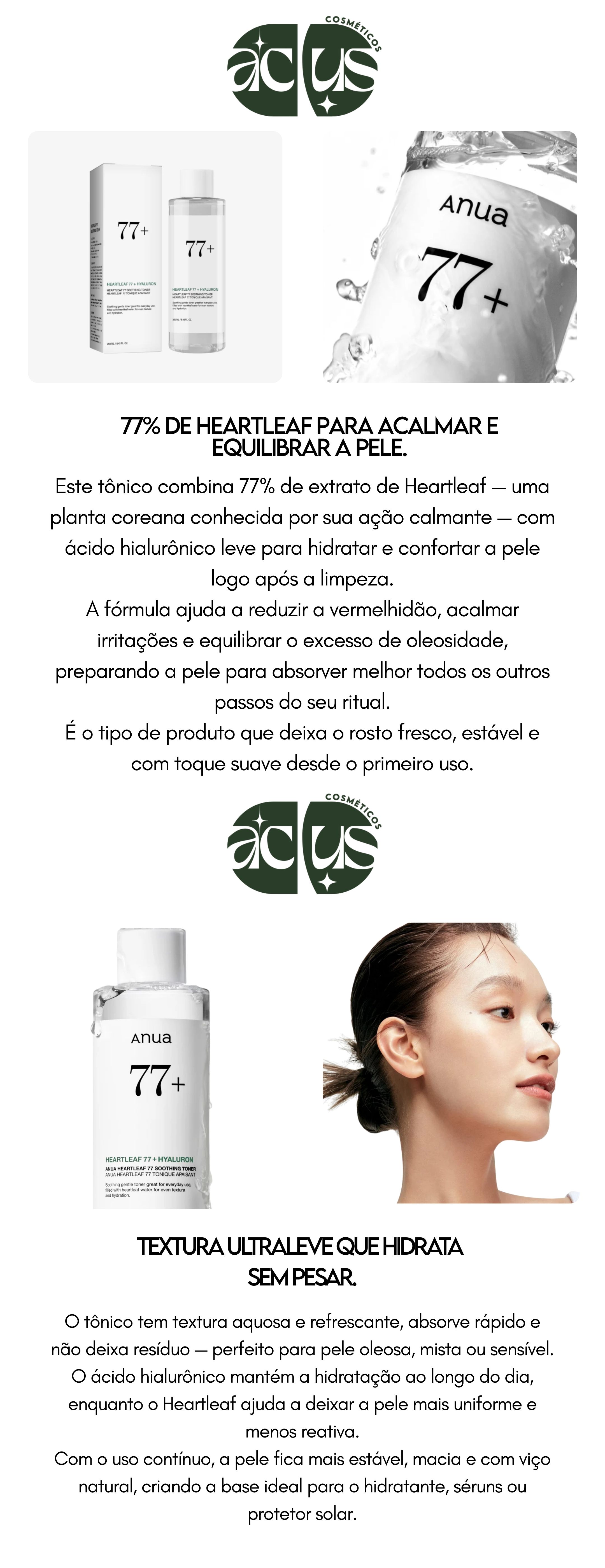 Acalma irritações, reduz vermelhidão e ajuda a equilibrar a oleosidade.